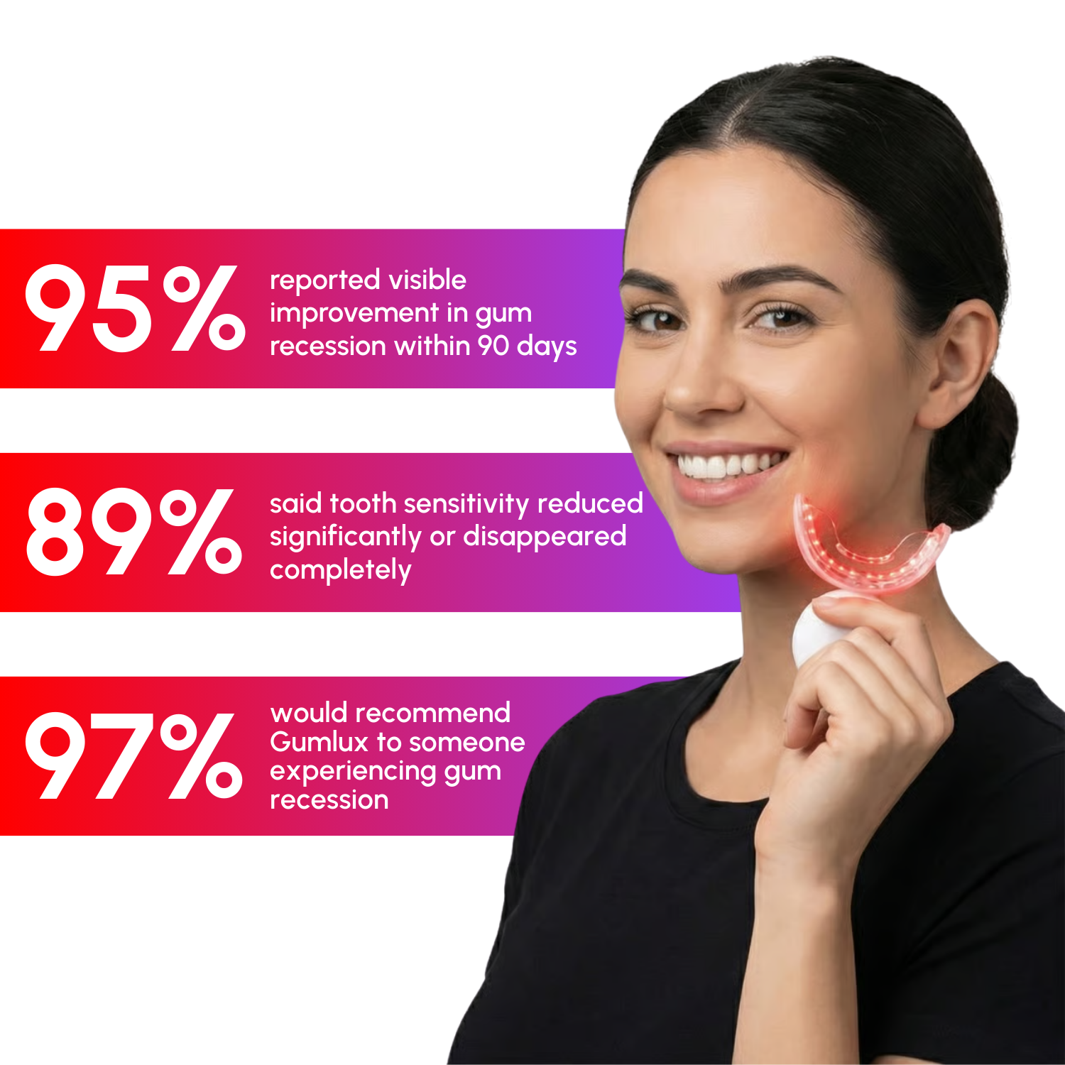 The traditional view has been that gum tissue can't regenerate. But recent research on red light therapy and photobiomodulation shows that stimulating cellular activity in soft tissue can promote recovery that was previously considered impossible. Thousands of Gumlux customers have seen improvements their dentists didn't think were possible.